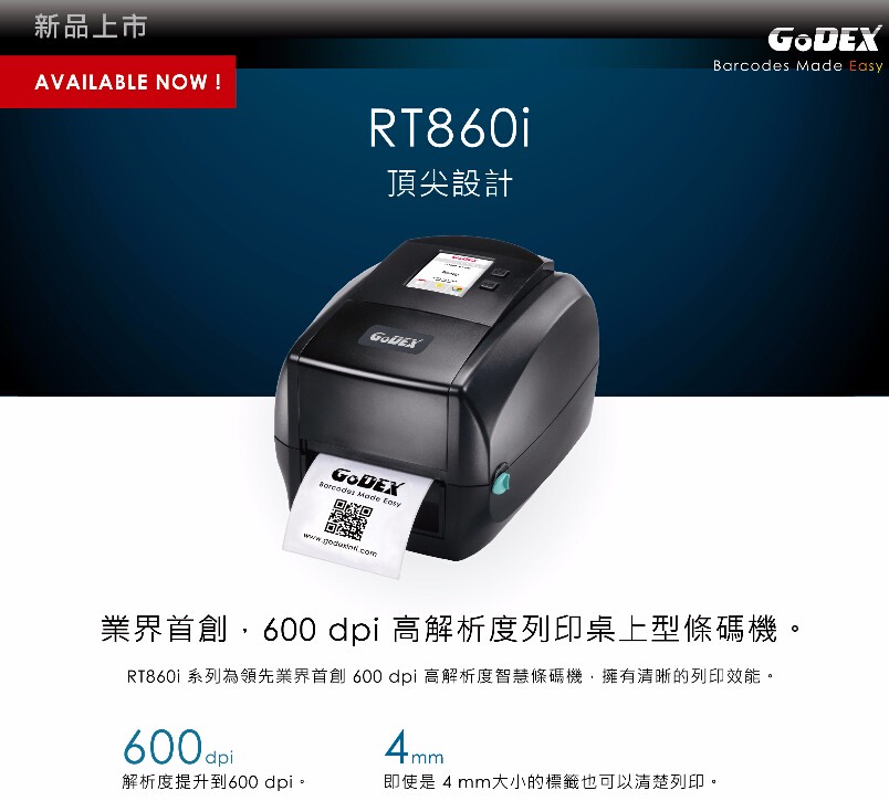 邦越條碼銷售科誠新款RT860i桌上型條碼機