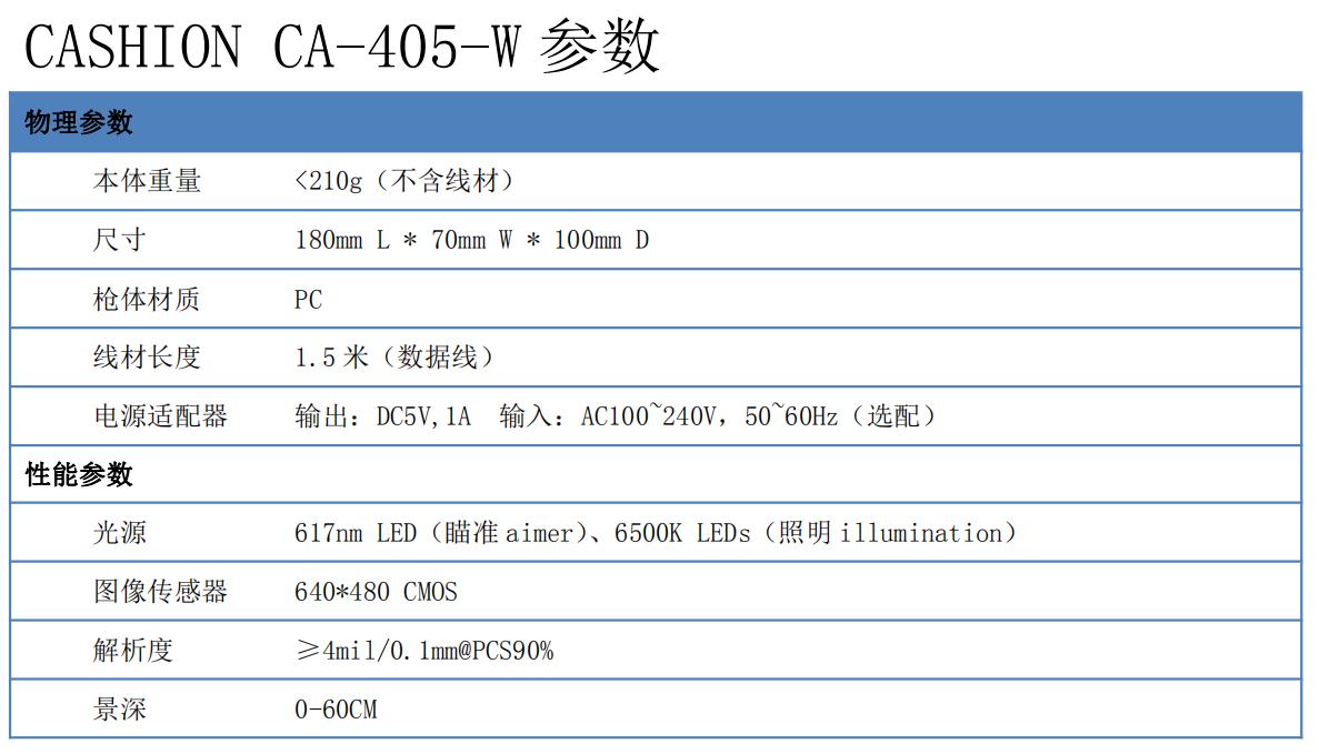 Cashion Ca-405-W是東莞邦越自主研發生產的工業型藍牙無線高清二維掃描槍,選用行業領先的影像傳感技術、照明和光學技術,可輕松讀取識別一維條碼、二維碼條碼及顯示屏上、模糊等條形碼;掃描速度快,讀取精準。